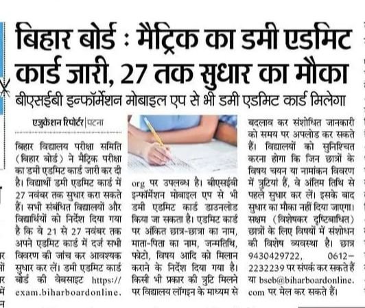 Bihar Board 10th Dummy Admit Card 2026-इस तरह से करें दसवीं कक्षा का डमी एडमिट कार्ड डाउनलोड !