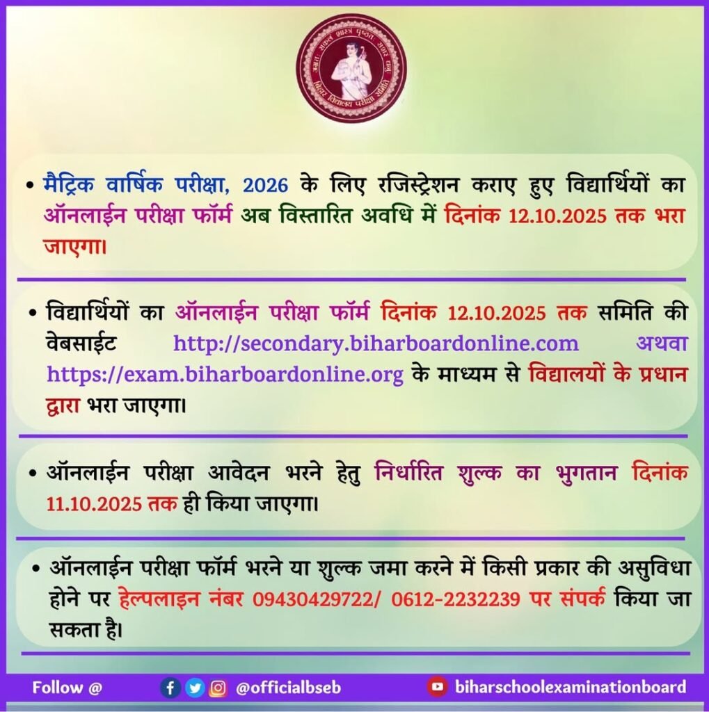 Bihar Board Matric Inter Exam Form 2025 – 10वीं और12वीं कक्षा का परीक्षा फॉर्म इस प्रकार से भरी जाएगी !
