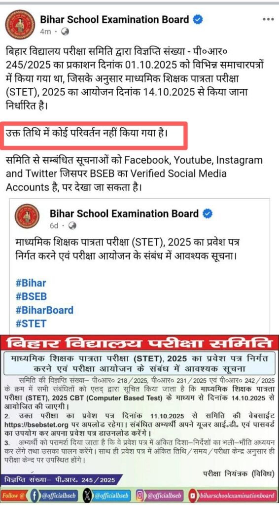 | Bihar STET Admit Card 2025 Release Date | 11 October 2025 |