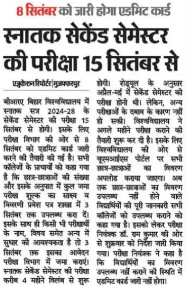 BRABU UG 2nd Semester Admit Card 2025 – इस तरह से कर पाएंगे एडमिट कार्ड डाउनलोड !