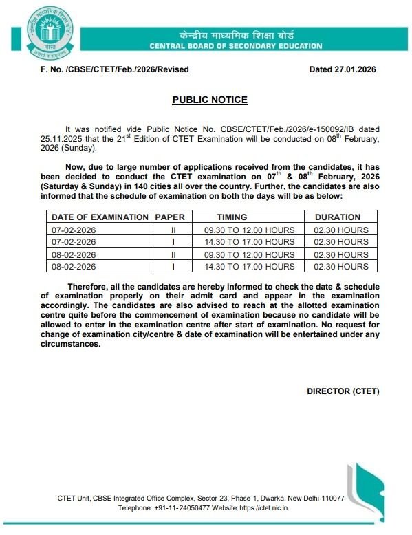 | CTET 2025 Exam Date | 08 February 2026 (Sunday) |