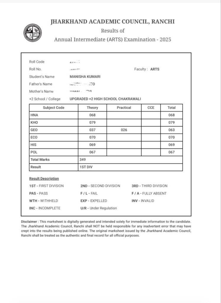 उपरोक्त बताई गई सभी स्टेप को फॉलो करके तमाम विद्यार्थी JAC Board 12th Arts Result 2025 आसानी के साथ छेड़ एवं डाउनलोड कर पाएंगे अपने मोबाइल के माध्यम से।