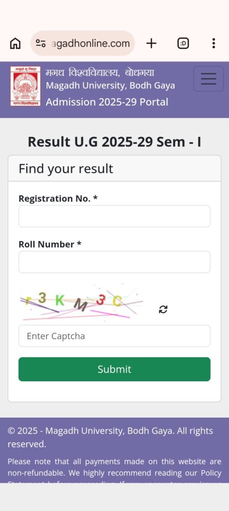 Magadh University UG 1st Semester Result 2025-29 कैसे देखें?