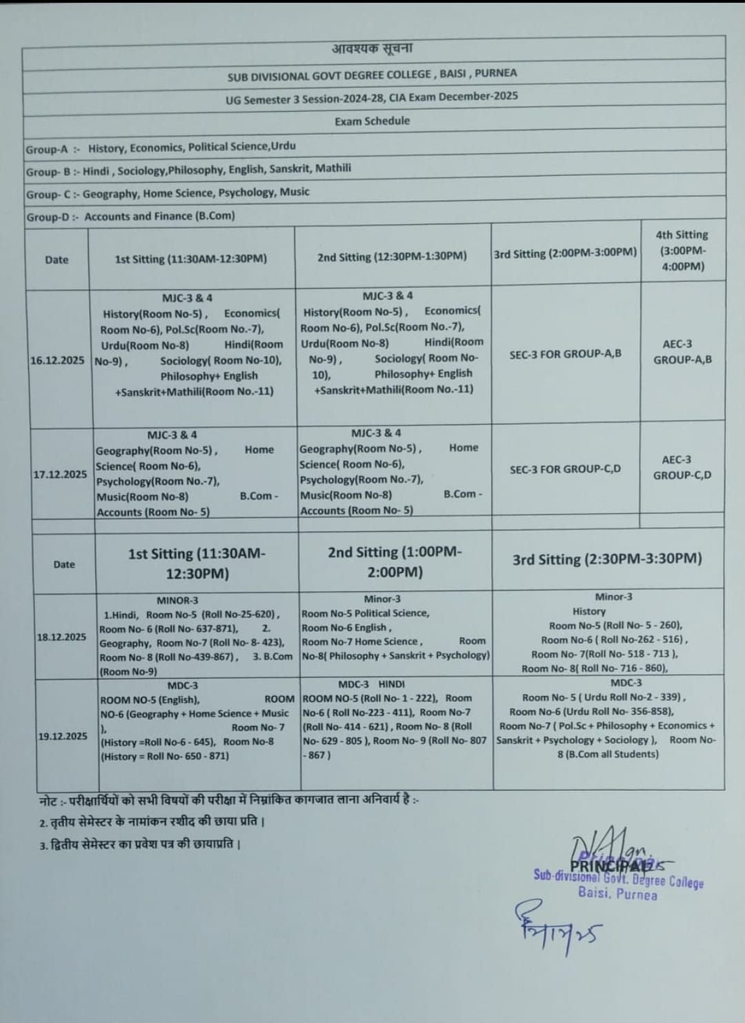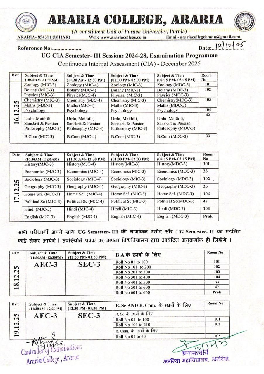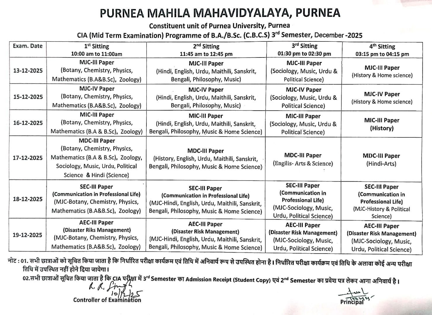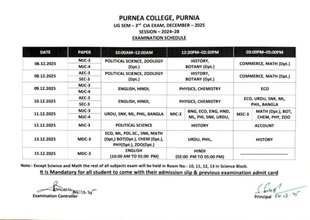 Purnea University UG 3rd Semester CIA Exam 2024-28 – यहां से देखिए सभी कॉलेज का परीक्षा शेड्यूल
