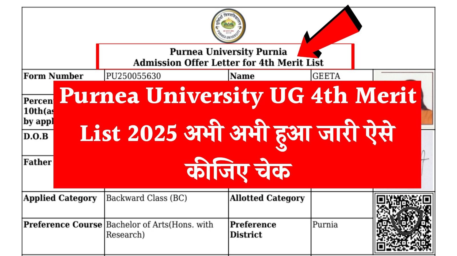 Purnea University UG 1st Merit List Check Kaise Karen 2025 : How To Check Purnea University UG 1st Merit List 2025-29 July 19, 2025